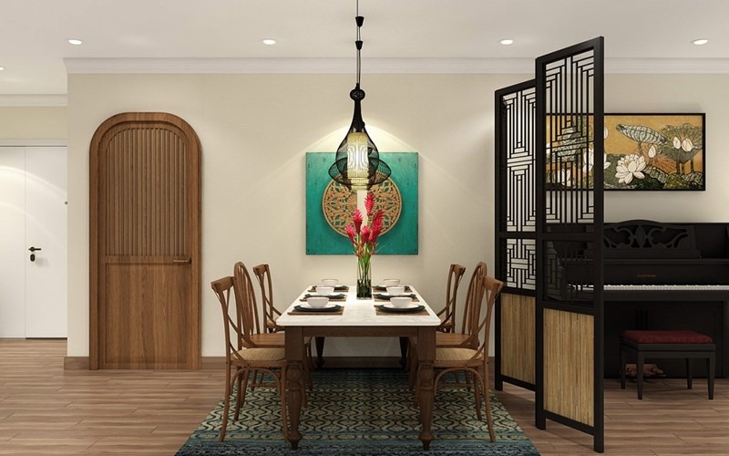 Vách ngăn gỗ giúp phân tách không gian giữa các phòng một cách khéo léo.