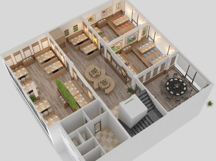 Ngoài khu vực ăn uống, nhà hàng có thể có thêm quầy bar, quán cafe,…