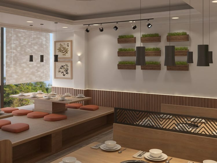 Thiết kế nội thất trong nhà hàng đơn giản, tiện dụng.